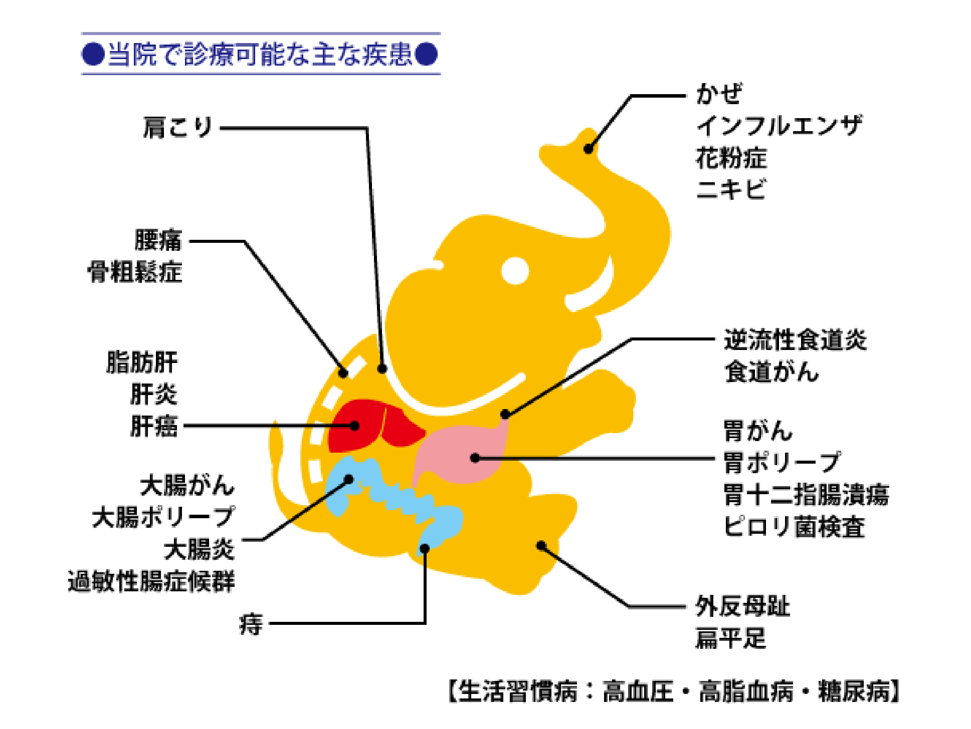 ●一般内科(かぜ、インフルエンザ、腹痛、慢性下痢、便秘、急性胃腸炎など)